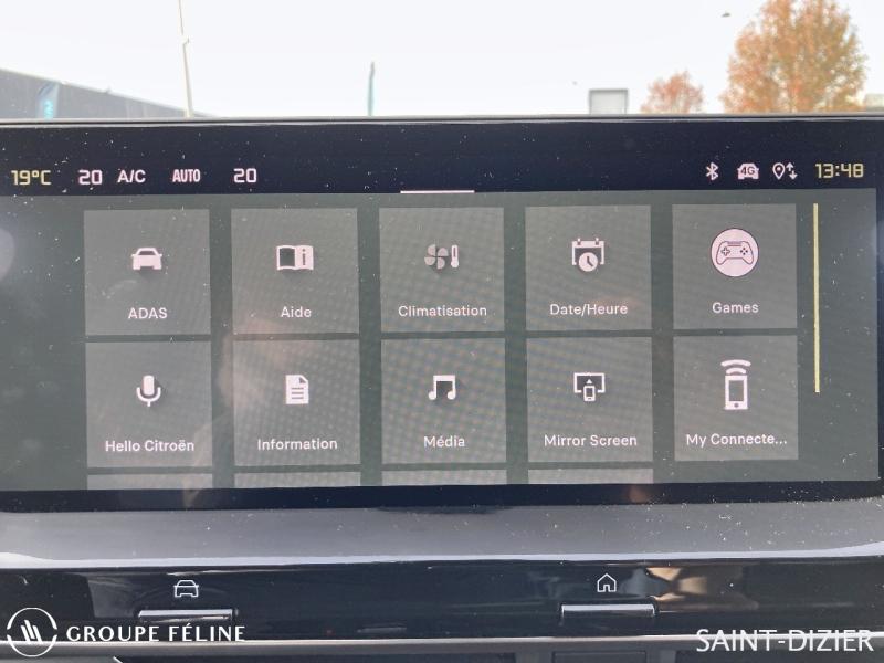 Barres de toit Cuir Noir / Cuir Adamantium Gris Platinium (M) Sièges avant chauffants 8 Haut parleurs ABS Accoudoir central AR avec trappe à skis Accoudoir central AV avec rangement Affichage tête haute AFIL Aide au démarrage en côte Aide au freinage d'urgence Airbag conducteur Airbag passager Airbag passager déconnectable Airbags latéraux avant Airbags rideaux Allumage des phares automatique Appel d'Assistance Localisé Appel d'Urgence Localisé Arrêt et redémarrage auto. du moteur Assistance de maintien de trajectoire Bacs de portes arrière Bacs de portes avant Banquette 1/3-2/3 Banquette arrière 3 places Boite à gants fermée Caméra de recul Capteur de pluie Clim automatique bi-zones Commandes du système audio au volant Cuir Noir / Tissu effet cuir Noir/Gris Démarrage sans clé Détecteur de sous-gonflage Eclairage au sol Eclairage statique d'intersection Ecran tactile ESP Feux arrière à LED Feux de freinage d'urgence Feux de jour à LED Fixations Isofix aux places arrières Follow me home Fonction MP3 Freinage automatique d'urgence Frein stationnement électrique automatiq Interface Media JA 19" AeroX Diamantées Noir Jantes Alu Kit mains-libres Bluetooth Lunette arrière surteintée Miroir de courtoisie conducteur éclairé Miroir de courtoisie passager éclairé MyCitroën Drive Plus Ecran tactile 12" Ouverture des vitres séquentielle Palettes changement vitesses au volant Phares antibrouillard LED Phares avant LED Plafonnier central AV et AR à LED Poches d'aumonières Poignées ton carrosserie Porte-gobelets arrière Prise 12V Prise USB Radar de stationnement AR Radar de stationnement AV Radio numérique DAB Rails de coffre Recharge sans fil pour smartphone Reconnaissance panneaux de signalisation Régulateur de vitesse adaptatif Régulateur de vitesse et de distance Répartiteur électronique de freinage Rétroviseur intérieur électrochrome Rétroviseurs dégivrants Rétroviseurs électriques Rétroviseurs rabattables électriquement Siège conducteur avec réglage lombaire Siège conducteur réglable en hauteur Siège passager réglable en hauteur Système avancé de détection d'obstacles Système d'accès sans clé Système d'éclairage intelligent Système de contrôle des angles morts Système de détection de somnolence Système de prévention des collisions Système de prévention des collisions AR Système de sécurité post-collisions Témoin de bouclage des ceintures AV Verrouillage auto. des portes en roulant Verrouillage centralisé à distance Verrouillage centralisé des portes Vitres arrière électriques Vitres arrière surteintées Vitres avant électriques Vitres teintées Volant chauffant Volant réglable en profondeur et hauteur